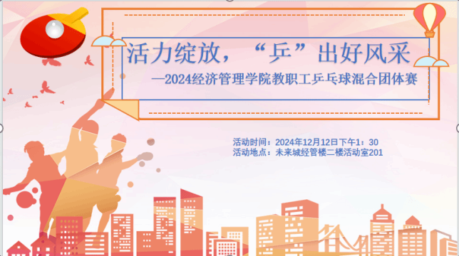 (通讯员:周玲 王林珠 摄影:胡启婧 胡松琴 王林珠 努尔夏提.居勒提)“活力绽放,‘乒’出好风采”。为了促进教职工之间的交流联系、增进教职工身心健康、丰富教职工业余文化生活和增强学院的凝聚力,Beat365官方网站分工会特别组织了2024教职工乒乓球混合团体赛。比赛于2024年12月12日下午在未来城校区崇信楼(Beat365官方网站大楼)二楼活动室举行。全院共30余名教职工人报名参与了此次比赛活动。根据各系及院直各单位报名情况,本次团体混合赛设男单、...