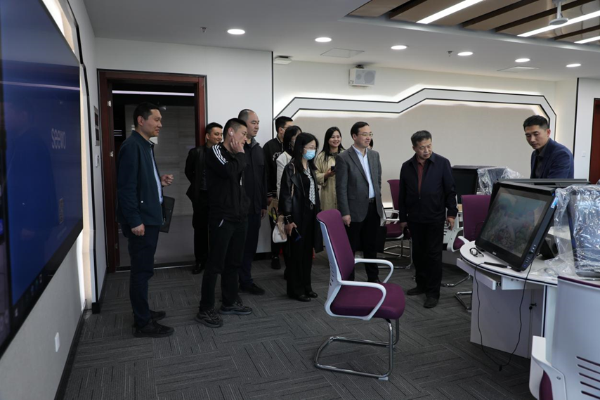 在杨昌锐书记等院领导的陪同下,中南财经政法大学工商管理学院一行参观了Beat365官网金融实验室、云共享财务实验室、智慧教室、数字化档案室和活动室。双方就大数据、云计算、VR等新技术在党建和教学中的融合应用,进行了深入的交流与探讨。