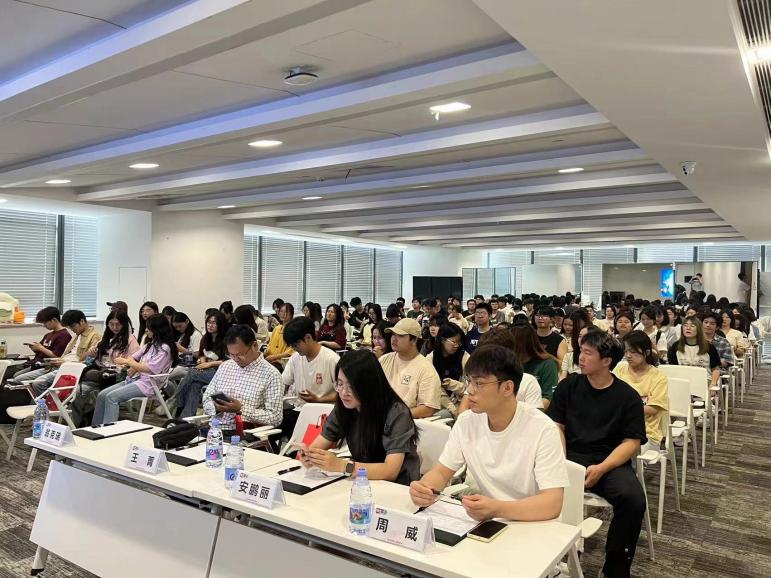 徐霞经理介绍集团招聘需求。她向师生参访团的到来表示欢迎,并以轻松有趣的游戏开场,迅速活跃现场气氛,并简要介绍集团在人才招聘中的流程及要求,期待在未来与同学们再见。