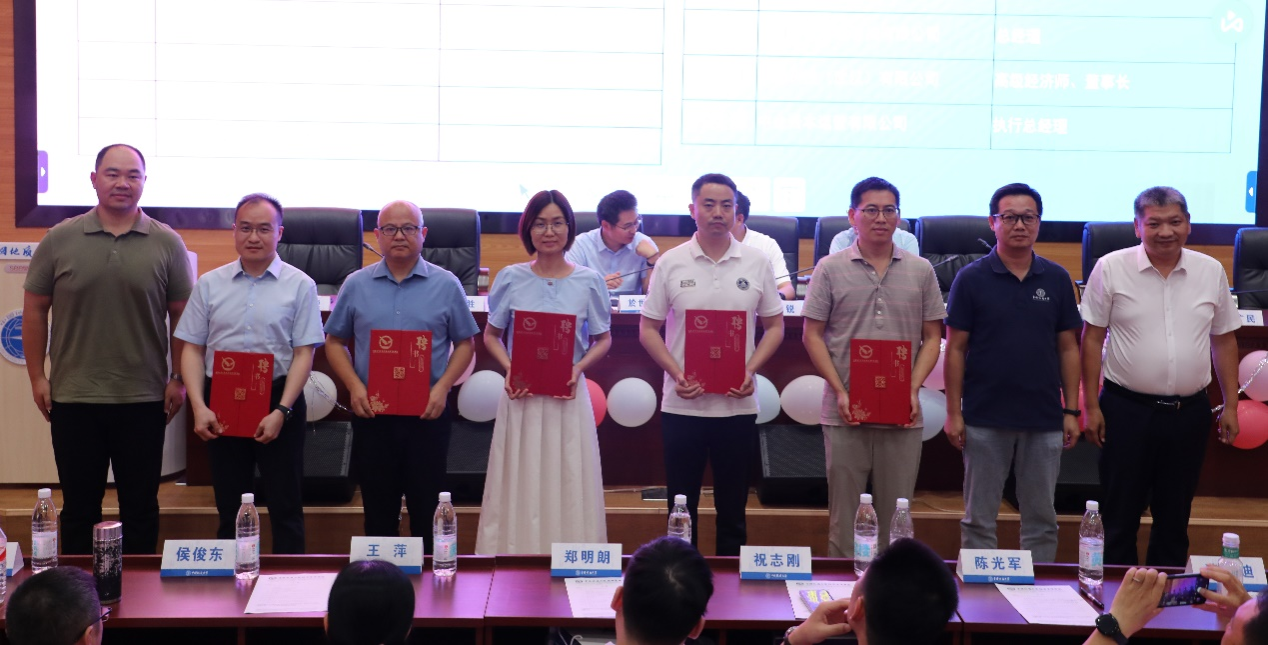 院务委员侯俊东教授、工商系谢雄标主任、会计系杨洁主任、会计系屈文彬书记为新任校外导师颁发聘书