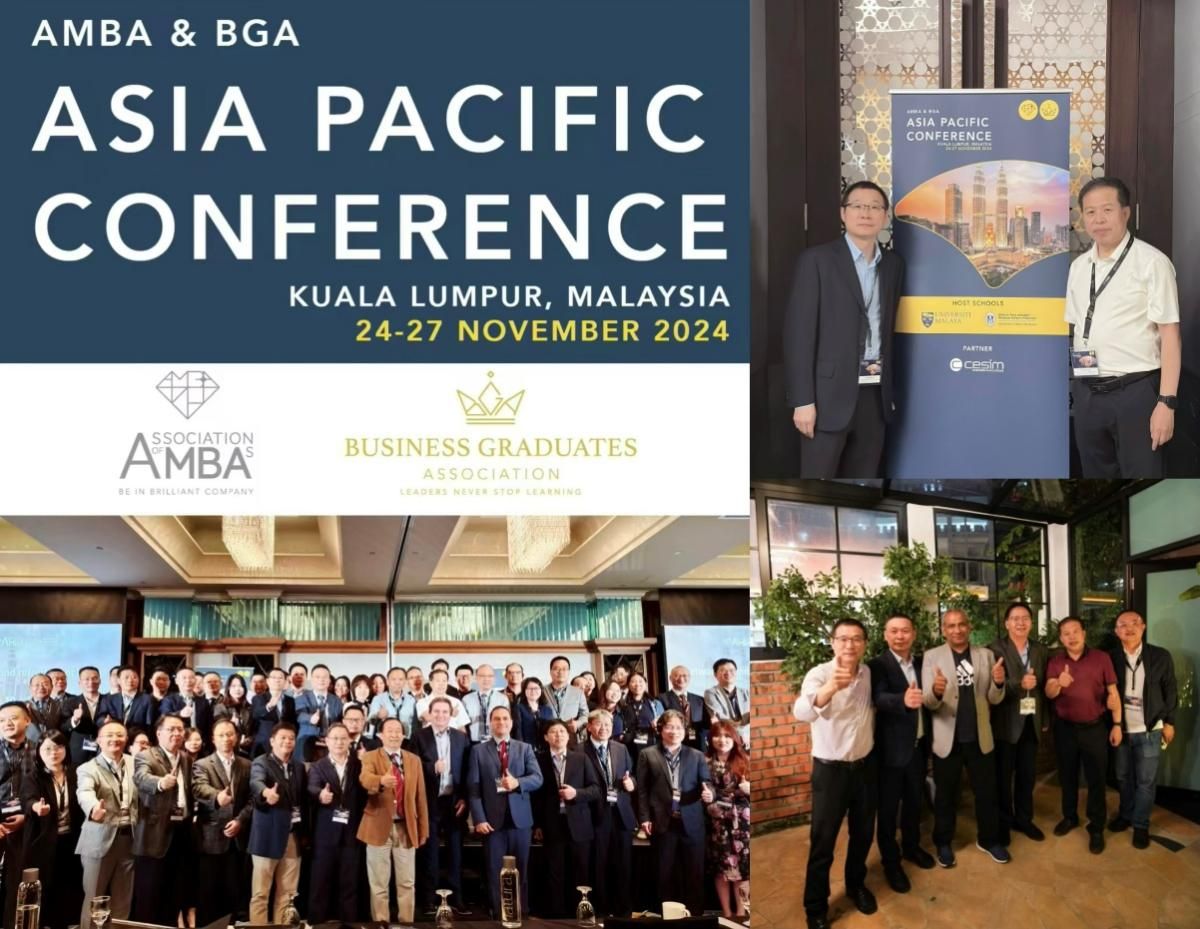 (通讯员:胡启婧)11月24-27日,AMBA&BGA亚太年会暨商学院院长主任论坛在马来西亚吉隆坡召开,该大会由马来亚大学与马来西亚北方大学联合主办,汇聚了来自全球十多个国家、数十个商学院的百余位院长和项目主任,是亚太地区商学教育界的一次盛会。Beat365官网党委书记杨昌锐、工商管理系侯俊东教授代表Beat365官网出席了此次大会,并与来自世界各地的商学教育专家进行了深入的交流与学习。