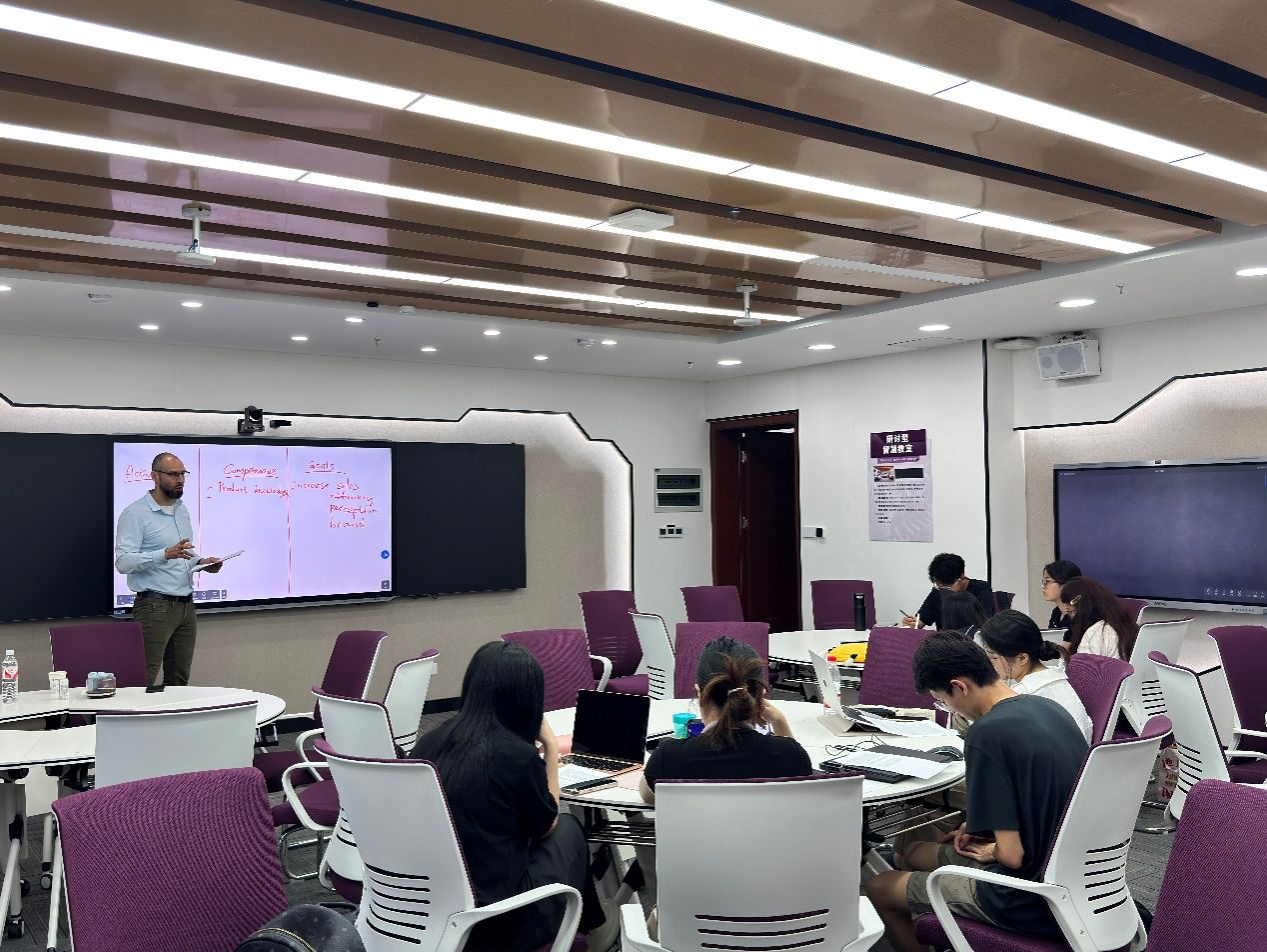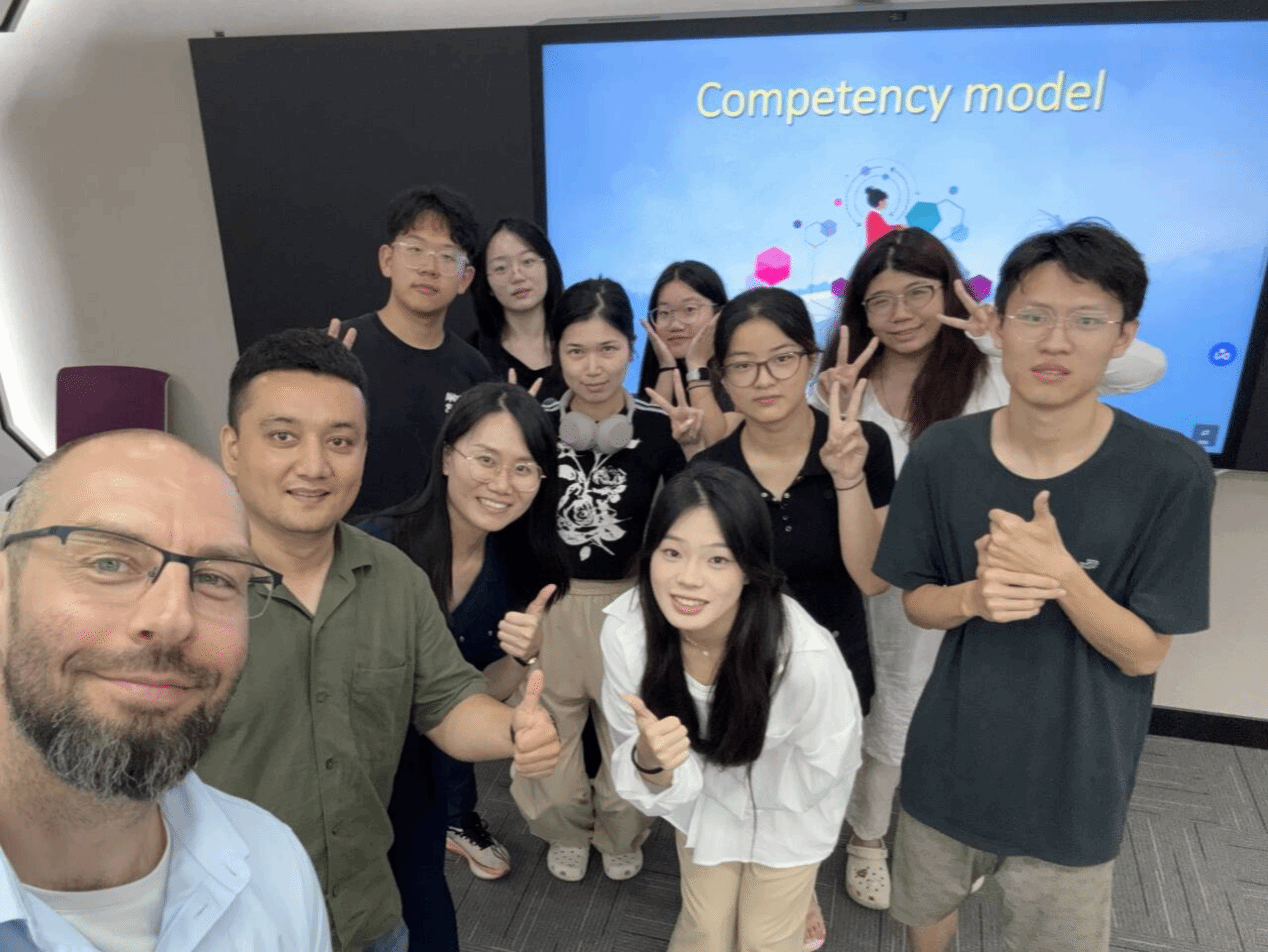 6月10日,DMITRIEV博士在Beat365官方网站智慧教室授课。他结合胜任力模型、T型技能及70-20-10学习法则等前沿理论,引导学生通过真实案例分析企业战略目标设定、学习需求评估及学习型文化建设。课堂采取互动研讨方式帮助学生掌握管理模型的实际应用,培养全球化视野与创新思维。