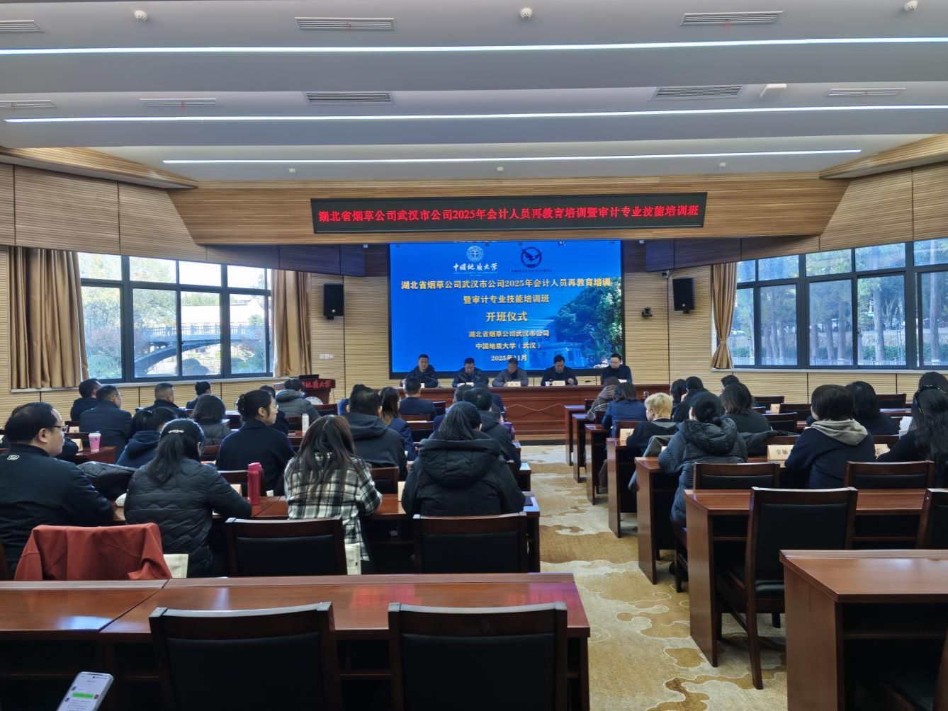 (通讯员:陈永平)2025年11月18日上午,湖北省烟草公司武汉市公司2025年会计人员再教育培训暨审计专业技能培训班开班仪式在Beat365官方网站八角楼报告厅隆重举行。湖北省烟草公司武汉市公司党委委员、副经理、副局长陈劲,财务处长李华华,审计处处长邓斌;Beat365官方网站党委书记薛保山,院长於世为等出席,湖北省烟草公司武汉市公司财务处长李华华主持本次开班仪式。