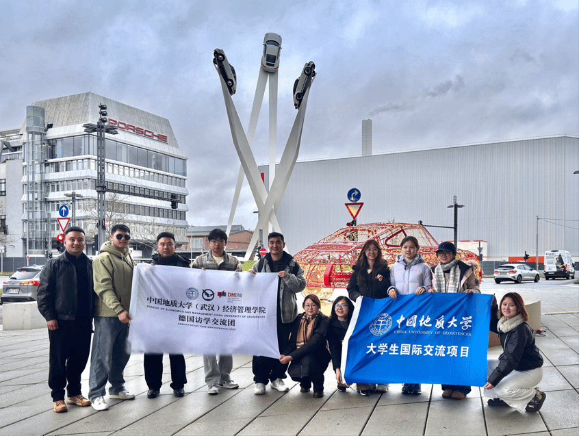 1月9日,访学交流团启程赴德,于次日抵达法兰克福,与美国阿尔弗莱德大学学生汇合,共同组成国际联合研学团队。在德期间,团队先后参访斯图加特城市广场、保时捷博物馆,深入了解德国工业制造与工匠精神;走访海登海姆商业中心,实地感受当地商业文化;登临海伦斯坦城堡,俯瞰城市全景;赴罗腾堡考察历史遗产,领会其文化保护与城市发展脉络。行程中,同学们还通过共同研讨、餐饮交流等方式,与美国学生及当地民众展开多维度互动。其中,中国学生带来的特色零食“辣条”成为文化交流的生动媒介,增添了轻松友好的交流氛围。参与学生表示:“此次访学不仅拓宽了我们的国际视野,也让我们在真实的跨文化环境中锻炼了沟通与合作能力。”德国合作方教师约根教授在指导行程时也充分肯定了中外学生积极互动的学习态度。