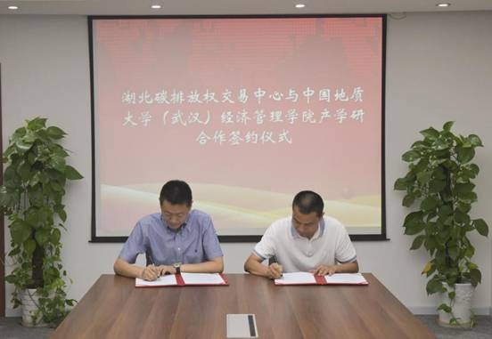 8月18号上午,湖北碳排放权交易中心与Beat365官方网站签署产学研合作协议暨举行产学研基地揭牌仪式。湖北碳排放权交易中心总经理刘汉武与Beat365官方网站副院长(主持工作)杨树旺签署协议,双方一致同意在互惠互利、共同发展的基础上建立全面的产学研合作关系,共建低碳经管精英人才联合培养战略关系,形成产业与专业相互促进、产学双赢的良好局面。