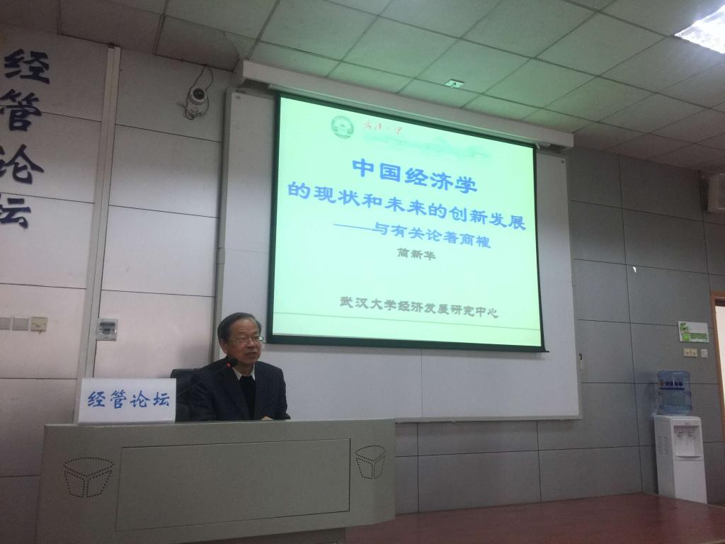 2017年12月8日下午14:30在MBA楼成功举办了第176期经管论坛,本次论坛我们诚挚邀请了武汉大学经济与管理学院的简新华教授,本次论坛主题为“中国经济学的现状和未来的创新发展——与有关论著商榷”。Beat365官方网站副院长王开明教授和学院的老师同学一起参加了本次经管论坛。
