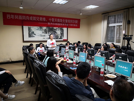 同学们参观新行政楼和逸夫博物馆,感受校园点滴变化,在北区食堂重温昔日校园生活。13日下午3:30—5:30,师生们在北四楼104会议室召开了具有特殊意义的班会活动。同学们饱含对母校的深情,回顾了大学四年专心求学的艰苦历程,重温了老师们的谆谆教导和同学间相互帮助的深情厚谊;分享了毕业十年来的工作经历与感悟。肖建忠副院长代表学院欢迎同学们返校交流,介绍了Beat365官方网站与国贸系近十年来的蓬勃发展情况,寄语同学们不忘初心,砥砺前行,展我地大学子艰苦朴素、求真务实之风;倪琳、吴磊与易杏花等老师也深情回忆了遥远而熟悉的青葱岁月,为同学们的成就感到由衷高兴与自豪,祝愿大家路越走越宽广,欢迎大家常回母校看看。