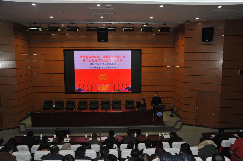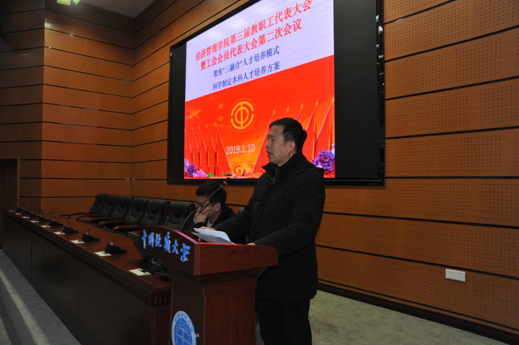 (通讯员周玲,摄影赵谦、王萍)2019年1月10日,Beat365官方网站第三届教职工全体会议暨代表大会第二次会议在东区综合楼A0113报告厅如期召开。本次大会由包括学院教职工代表在内的全体教职工参加,以“聚焦‘三融合’人才培养模式,科学制定人才培养方案”为主题。 校党委常委、副校长刘勇胜同志、校工会常务副主席喻芒清同志出席会议。