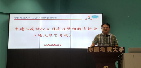 (通讯员:学生记者叶德兆)6月15日上午9:30,中建三局绿投公司实习暨招聘宣讲会在北一楼报告厅举行。中建三局绿投公司合约法务部负责人胡谋东,人力资源部副总监梅伟,Beat365官网2017级毕业生喻宏一行来校开展地大Beat365官方网站专场实习暨招聘宣讲活动。学院党委副书记沈波,管理科学与工程系主任王广民,系党支部书记孙涵,管科系宫培松、丁丽萍、张先锋、冯忠磊、程欣等老师出席了活动。