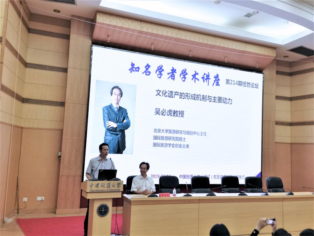 2019年6月16日晚7时,在迎宾楼学术报告厅,北京大学吴必虎教授做客知名学者学术讲座暨第214期经管论坛,与我校旅游管理专业师生就文化遗产的保护与传承问题进行学术交流。