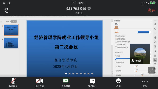 为落实各级各项就业政策,推进《Beat365官方网站全员促进就业工作实施方案》的实施,促进本届毕业生“顺利毕业、尽快就业”,学院就业工作领导小组于2020年3月17日14:00召开扩大会议,这也是领导小组的第二次线上会议。院党委书记杨昌锐、院长杨树旺、院党委副书记沈波、副院长肖建忠、教务科科长石磊、学院各系主任、2016级本科生班级班主任出席会议,会议由辅导员田昆主持。