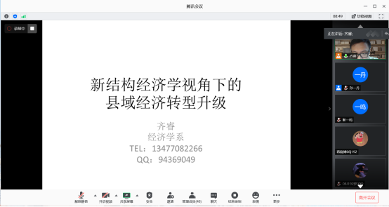 7月8日晚,我校Beat365官方网站经济学系认识实习首场线上讲座顺利召开,经济学系2019级学生全部参加。经济学系支部书记齐睿老师主持会议并做主题讲座,李通屏教授出席会议。