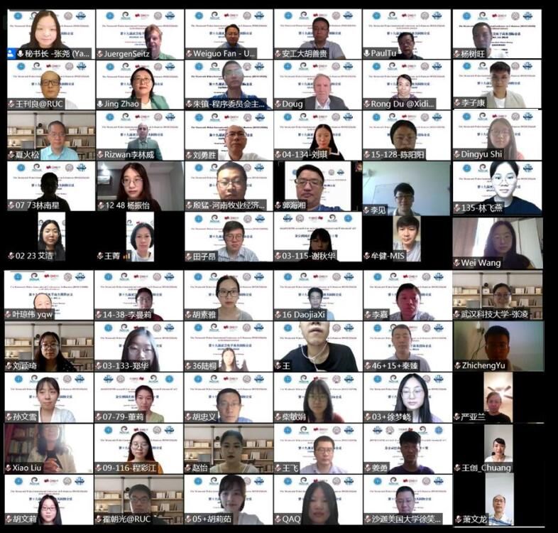 武汉电子商务国际会议是国际信息系统协会附属会议(AIS),也是唯一一个定期在中国召开的AIS学术年会。会议旨在展现数字化变革时代的创新研究成果,促进信息系统、市场营销、战略管理、经济学和运营管理等多学科交融的电子商务研究。会议收到了来自7个国家(地区)的134篇投稿论文,37所大学的61位学者和研究生在线报告了研究成果。大家围绕“大数据分析”、“跨文化电子商务”、“数字化技术与转型价值”、“电商战略与在线营销”、“人工智能与新IS研究”等12个领域15个专题展开交流。本届国际会议评选出最佳论文一篇,提名论文一篇,18篇优秀论文将被推荐到多个SSCI和EI国际期刊。
