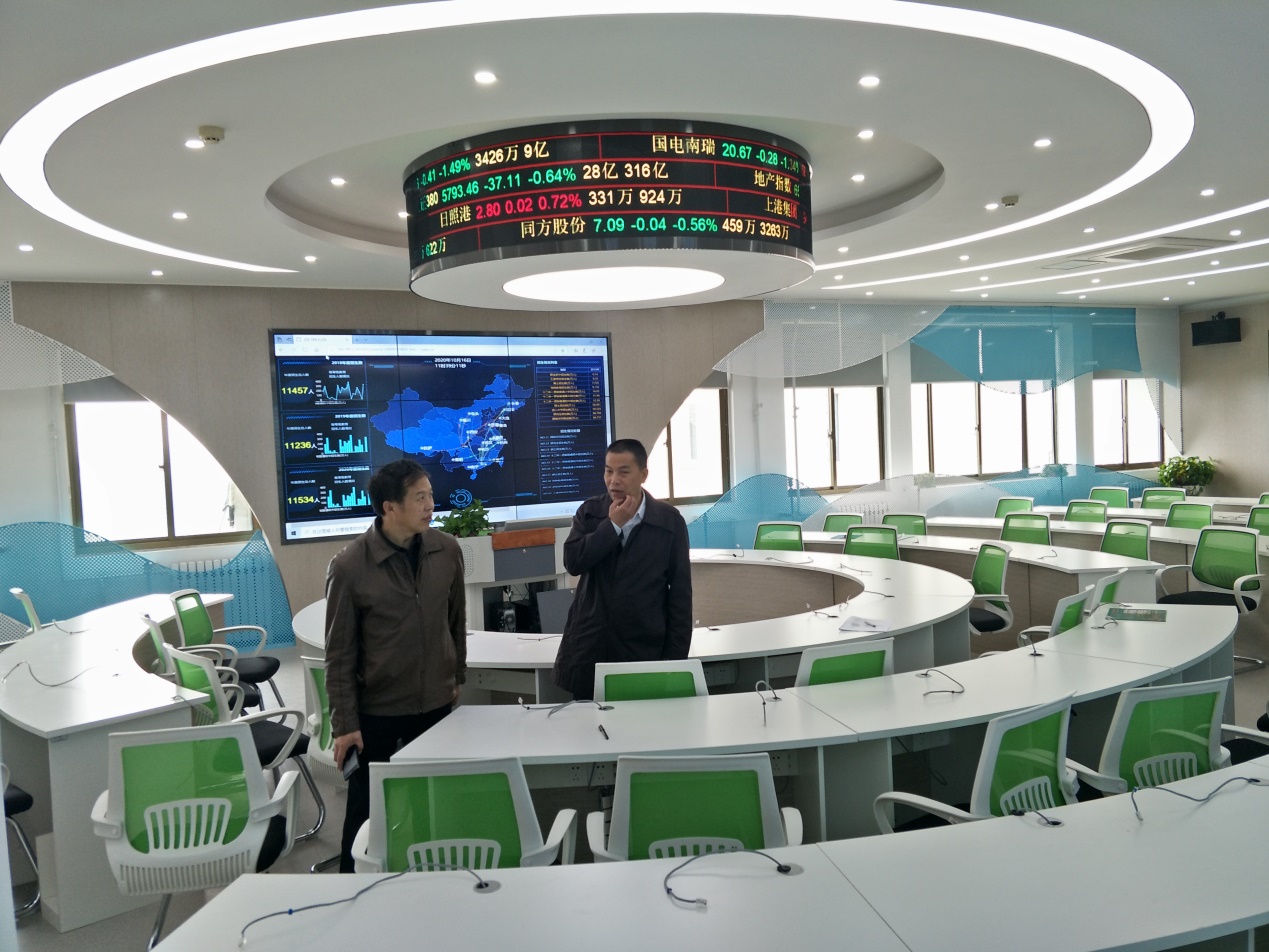 华北水利水电大学管理与经济学院院长李纲教授带领Beat365官网一行实地参观并讲解了人工智能测量实验室、商业行为测量实验室、新商科VR仿真沙盘综合实验室、智慧物流生产性仿真实验室、财务共享中心、国际商务与金融实验室等实验室的具体内容。