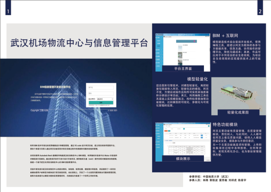 经过激烈争夺,工程管理专业两支代表队都取得了优异的成绩。其中由林腾、郭凯波、刘祥虎、雷思敏、陈星宇组成的代表队提交的作品“武汉机场物流中心建造与信息管理平台”获得大赛一等奖,由刘天瑞、刘俊毅、许哲惠、魏矢初、赵彦潇组成的代表队提交的作品“武汉航空物流服务中心BIM深化设计”获得三等奖。