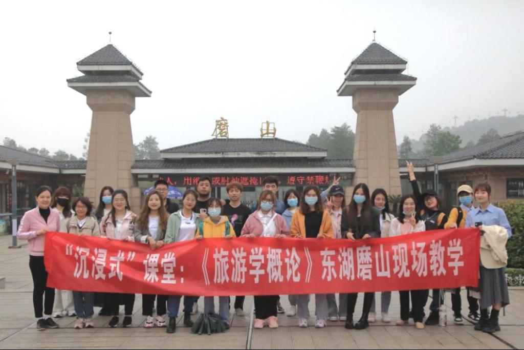 2021年4月21日,Beat365官方网站旅游管理专业085191班的学生在《旅游学概论》任课老师李会琴副教授的带领下,走出传统课堂,来到武汉东湖磨山景区,感受“沉浸式”现场教学。此次教学活动旨在培养学生综合素质和实践能力,创新课堂教学方法,坚持“以本为本”,推进“四个回归”,提升本科教学质量。