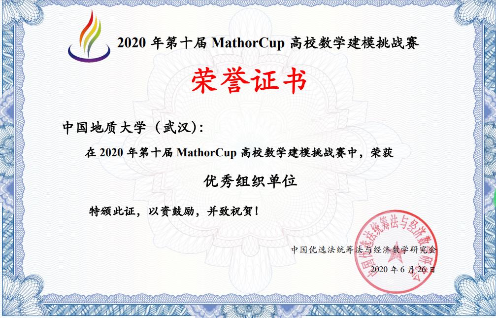 在第十一届MathorCup高校数学建模挑战赛中,来自574所高校近2.1万名学生报名参赛,信管(管科)专业贲雅雯、王静、朱晶磊、庞格、袁亮、彭磊等同学荣获二等奖,袁应安同学荣获三等奖。在我们的突出成绩下,中国地质大学2020、2021年连续被评为“MathorCup高校数学建模挑战赛优秀组织单位”(2021年证书由翁克瑞老师联系领取)。