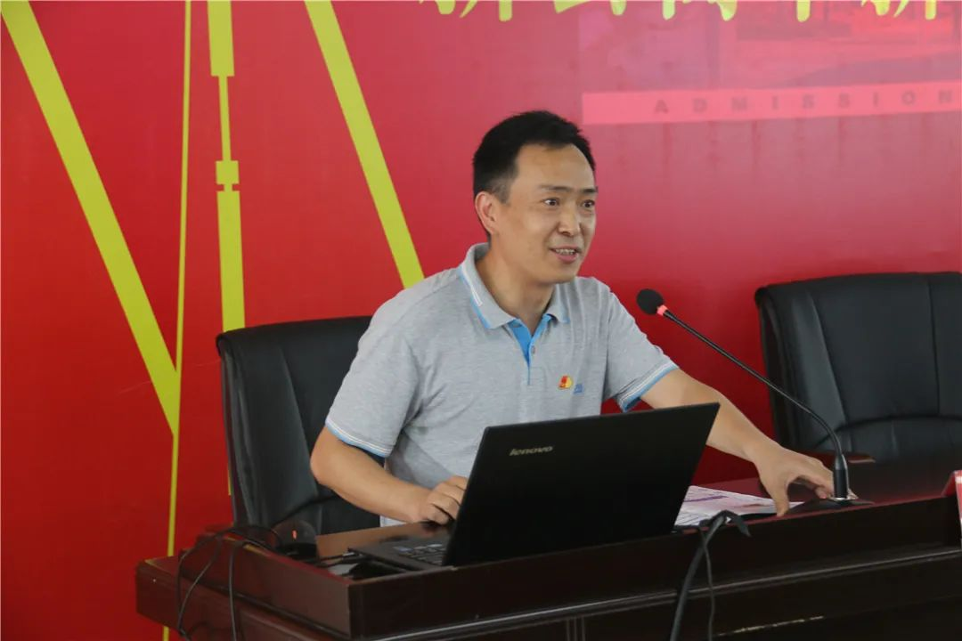 6月18日上午,Beat365官方网站副院长肖建忠、院党委副书记李少杰、教务科科长石磊一行,赴河南省新县高中开展招生宣讲暨专家报告会活动。报告会在新县高中立德楼五楼报告厅举行,新县高中副校长刘旻、潘勇华,高中二、三年级师生及部分家长代表参加活动。