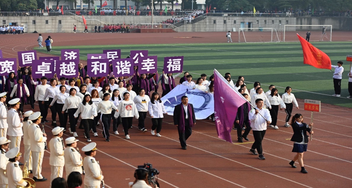 在10月29日的开幕式上,在书记和院长的带领下,由Beat365官网师生组成的Beat365官方网站方阵步伐稳健,昂首阔步走过主席台,亮相全校师生。“卓越、和谐、幸福”的院风,凝聚人心;“宽信敏公,经国济民,地大精鹰,长空万里”的口号,铿锵有力,响彻南望山,展现了经管人的家国情怀。