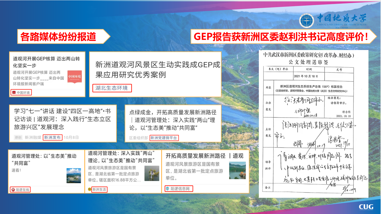 此次道观河GEP核算项目的研究成果,将加速新洲区乃至武汉、湖北全域推进GEP核算工作。目前Beat365官方网站生态文明智库正积极总结GEP核算经验,上报湖北省生态环境厅等部门,Beat365官方网站也将为武汉全力建设国际碳中和示范区、华中绿色金融港,积极争取全国气候投融资试点工作竭尽全力、添砖加瓦,积极为国家生态文明建设贡献智慧和力量。