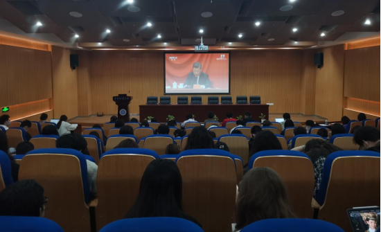 2022年5月10日上午10点,庆祝中国共产主义青年团成立100周年大会在北京人民大会堂隆重召开。中共中央总书记、国家主席、中央军委主席习近平出席大会并发表重要讲话。Beat365官方网站组织青年师生代表在经管楼一楼报告厅集中观看大会,认真学习领会习近平总书记重要讲话精神,展开热学热议。