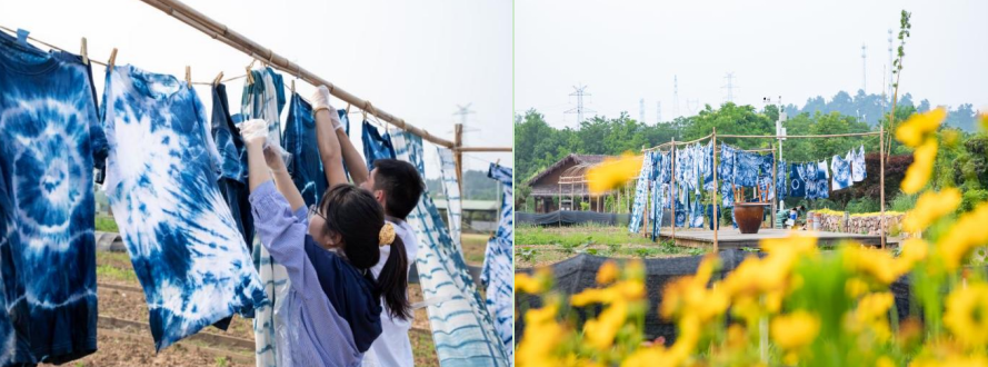师生晾晒扎染衣物