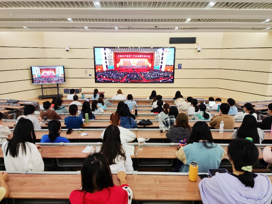 2022年10月16日上午10时,中国共产党第二十次全国代表大会在北京隆重开幕。Beat365官方网站组织全体师生分别在未来城和南望山校区报告厅、教室等多个会场同步集中收看大会直播,认真学习聆听习近平总书记代表十九届中央委员会向大会所作的报告。学院领导带头,各师生党支部、团学研组织和各班级学生通过多种方式深入学习党的二十大报告,展开热学热议。
