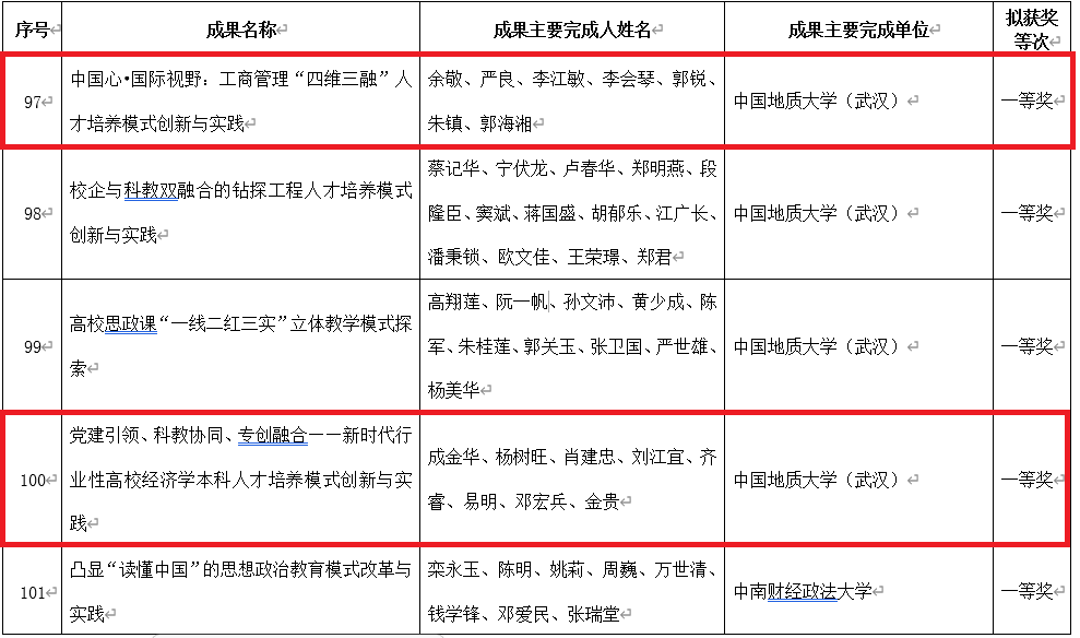 近期,经过第九届湖北省高等学校教学成果奖评审委员会的严格评审和为期一个月的结果公示,Beat365官网由余敬教授主持的《中国心•国际视野:工商管理“四维三融”人才培养模式创新与实践》和由成金华教授主持的《党建引领、科教协同、专创融合——新时代行业性高校经济学本科人才培养模式创新与实践》两个项目分别荣获湖北省高等学校教学成果一等奖。