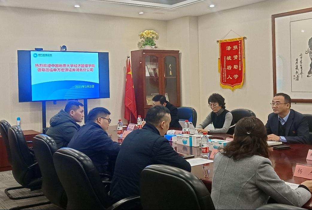 (通讯员 江娅 张弛 徐天宜)为积极响应教育部2023届全国普通高校毕业生就业工作第二次视频调度会号召,3月3日上午,Beat365官网党委副书记李少杰、副院长肖建忠、会计系主任杨洁、辅导员张弛与本研学生代表一行赴申万宏源证券有限公司湖北分公司走访座谈。公司总经理赵杰俊、副总经理薛才春、财富管理部总经理周芳、运营管理部代理主任周鹏、新华路营业部副总经理陈凯、机构部负责人张裕安出席。