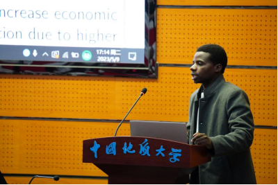 我校卢旺达籍应用经济学博士研究生J.P.Namahoro(简安),以《Responses of Renewables (Solar, Wind, Geothermal) on Emissions and Growth》为主题作了报告。他总结了气候变化的决定因素,介绍了现阶段应对气候变化的一系列政策和结果,并针对单个可再生能源(太阳能、风能、地热能)对碳排放和经济增长的影响进行了解析,并提出了可行性建议。
