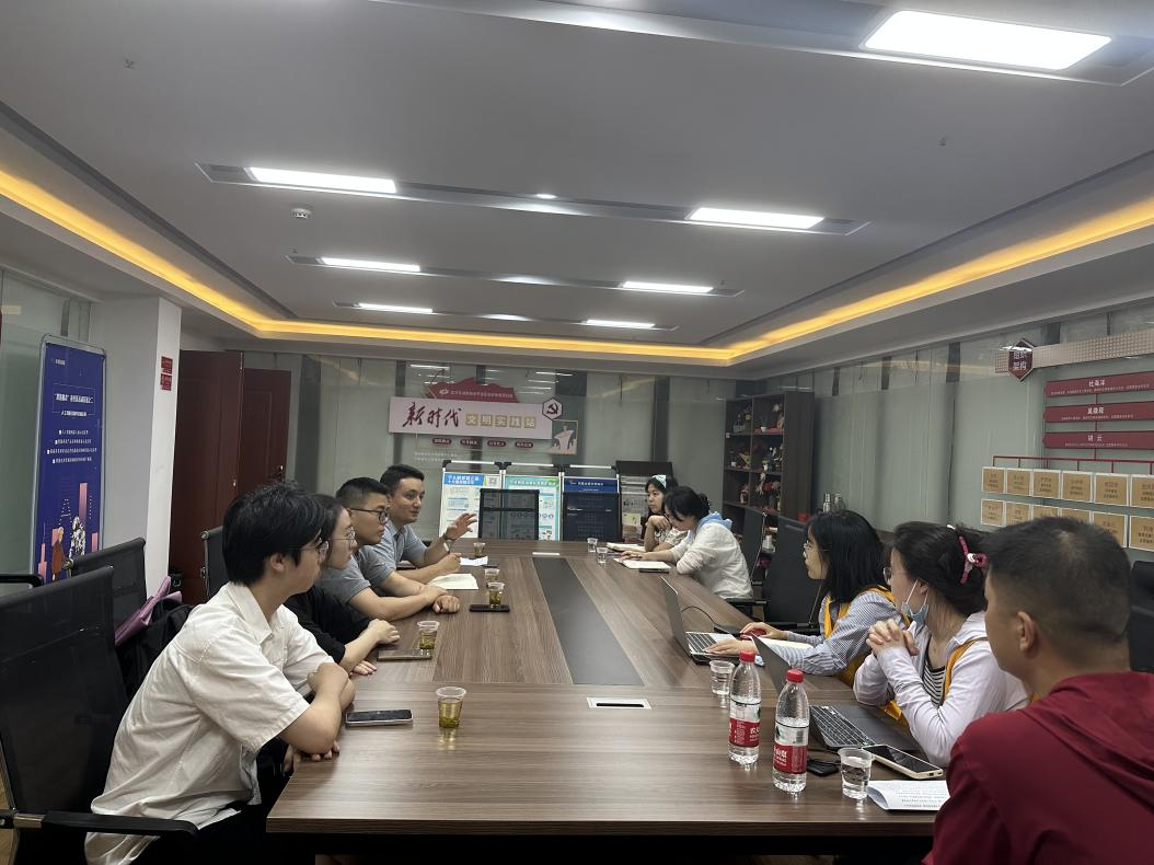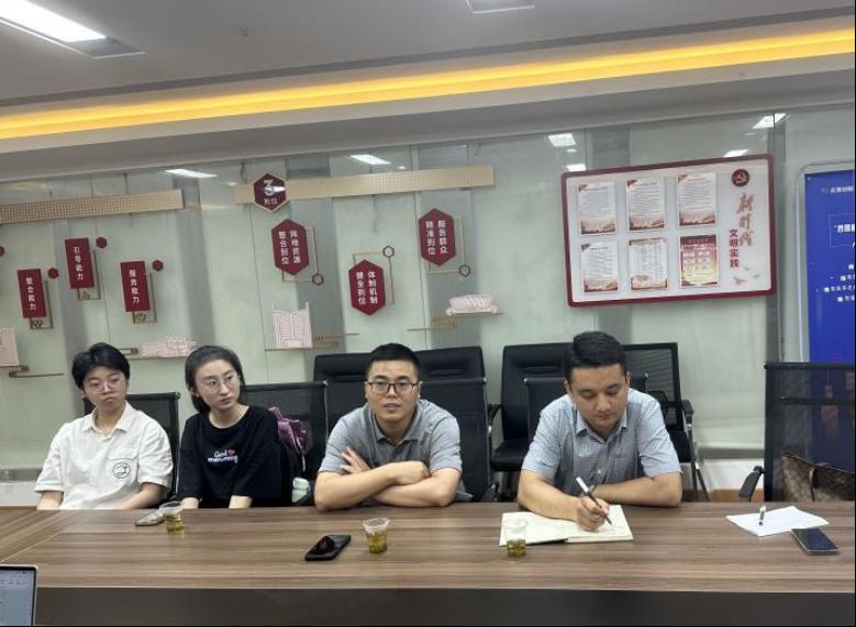 光谷壹新社工项目主管覃敏姣介绍了社区暑期托管班等项目计划,提出招募志愿者和助教等诉求,并高度肯定了Beat365官网志愿者在学雷锋月等活动中服务社区工作的积极表现,希望继续深化合作开展系列项目。努尔夏提·居勒提老师与工作人员就项目对接进行了详细交流,并介绍了Beat365官网“经鹰少年”宣讲队、启明星盲校支教团、经鹰宣讲团、志愿者工作部等发展情况,表达了推动志愿服务和社会实践进社区的期待。