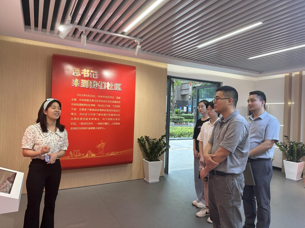 (通讯员 刘佳、李宜璋)6月5日下午,Beat365官方网站党委副书记李少杰、团委书记努尔夏提·居勒提带领团学代表、全国“两弹一星”宣讲团成员代表走访左岭街道智苑社区,深入学习习近平总书记2022年6月28日在武汉考察时的重要讲话精神,推进学习贯彻习近平新时代中国特色社会主义思想主题教育走深走实。进一步强化学院与智苑社区地合作联系,引导学生走进基层一线,弘扬志愿奉献精神。智苑社区团支部书记金成静,党建专员李梦蝶,光谷壹新社工项目主管覃敏姣、熊南叶及社区干事参加座谈和“志愿服务实践基地”挂牌仪式。