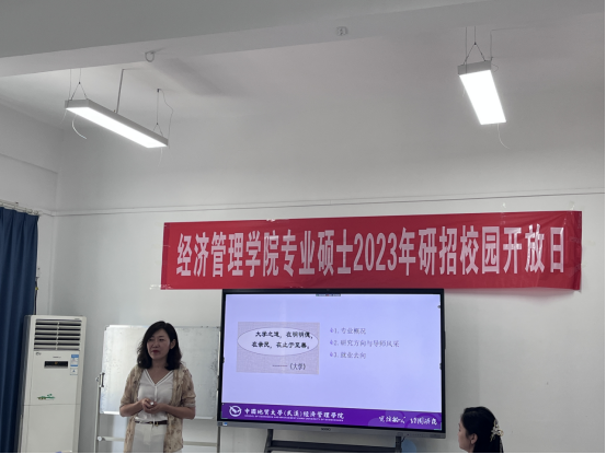 在专业介绍及优势特色宣传环节,经济系王来峰老师详细介绍了资产评估专业的发展历程与我校资产评估专业学位点的发展情况、师资队伍、科研竞赛、在校生与毕业生情况,他指出我校资产评估特色专业方向有:矿业权评估、珠宝价值评估、土地价值评估。