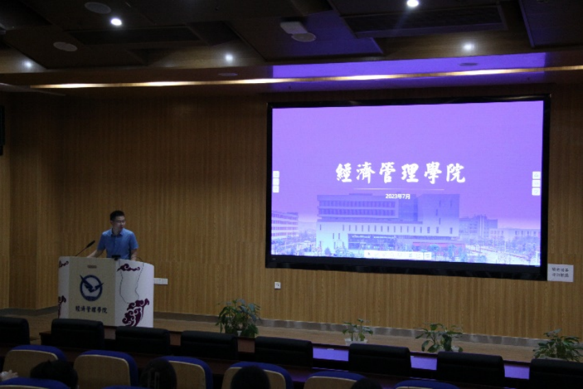 Beat365官方网站院长於世为在开营仪式上致辞并做学院介绍。他从Beat365官方网站的历史发展为切入点,讲述了建院以来学院的各学科从无到有、从小变强的发展历程,介绍了学院目前应用经济学、管理科学与工程等优势学科,多个省级、校级科研平台和学术交流平台,以及雄厚的师资队伍,重点从学院思政课堂、制度保障、师资配比、重大科研项目、经费资助、国际交流等方面的情况介绍,突出了学院强化思想理论教育和价值引领,坚持以学生为本、以学科为基础的教育理念,明确了学院对学术学位研究生重科研能力、创新意识培养,重视通过重大科研任务育人,构建“三融三跨”研究生培养模式下,研究生教育内涵式发展。