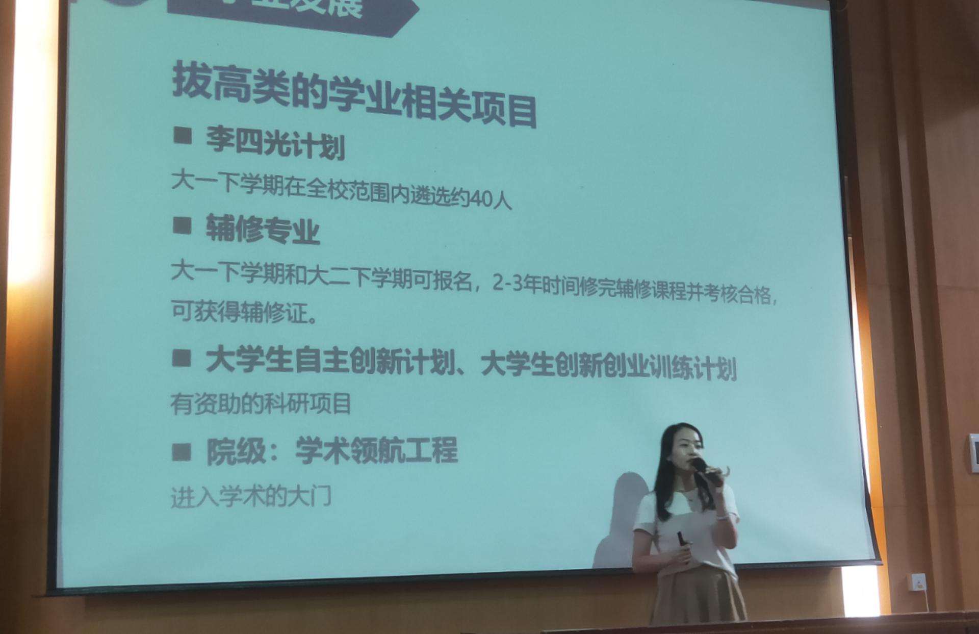 9月6日上午,在学校党委书记黄晓玫老师为全体新生讲授题为《仰望星空脚踏实地做知行合一地大人》的“开学第一课”后,学院2023级全体本科生在西区教三楼109参加2023级新生见面会,2023级辅导员徐媛老师介绍了学院和年级的基本情况,并就新生如何过好大学生活提出了建议。9月6日下午,徐媛老师首先作“学习制度与学业发展”主题报告,为同学们讲解大学的学习制度和学业发展项目,并为新生的学业规划提出建议。随后学工组努尔夏提老师为新生们讲解奖励资助政策与评优制度,涵盖国家、学校以及学院各类奖励资助政策,并提醒同学们在大学期间要注重全面发展。最后,学工组张弛老师作“学业与职业生涯规划教育”专题报告,从就业的角度指导新生制定个人发展规划。
