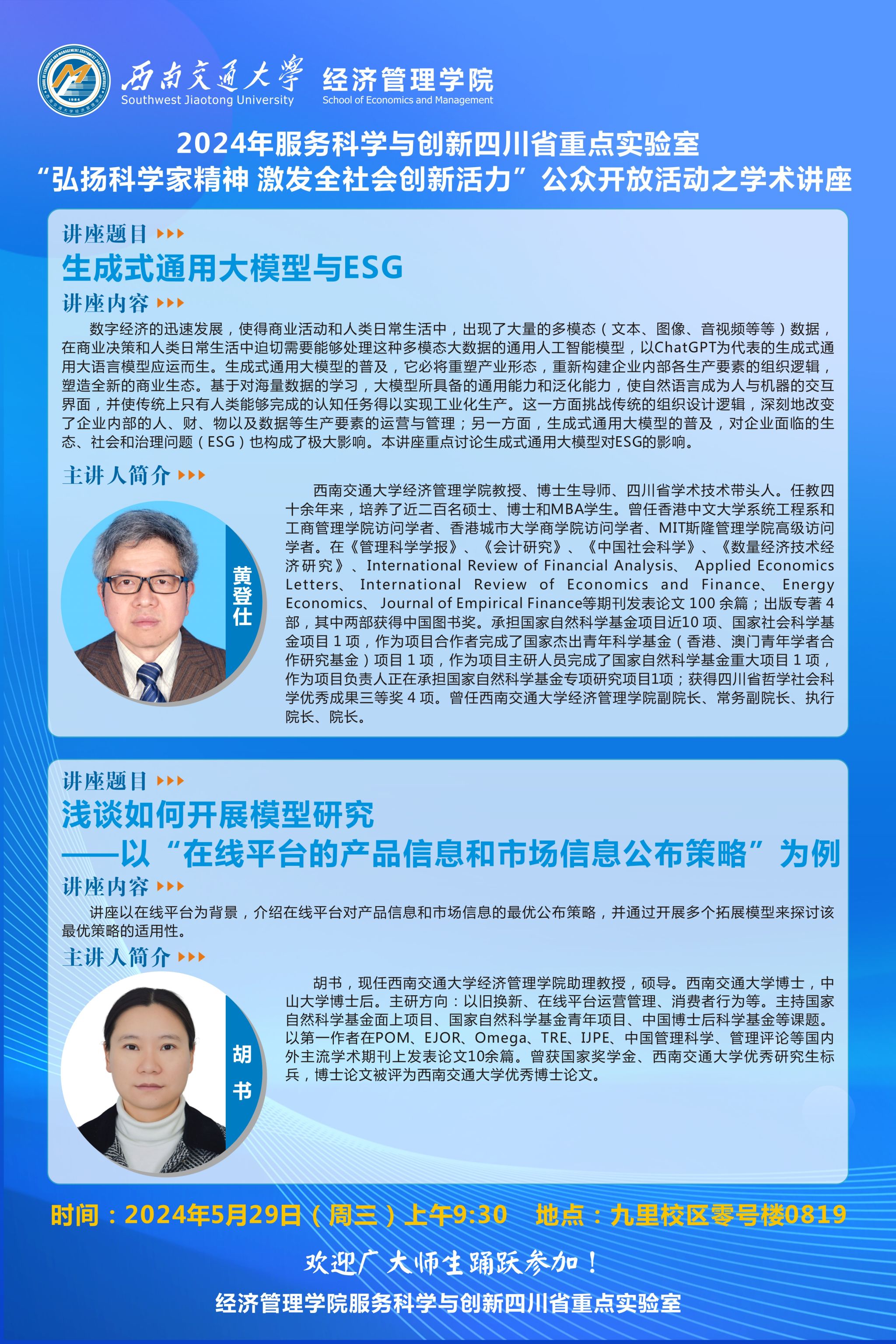 英国上市365官网黄登仕教授及胡书助理教授讲座