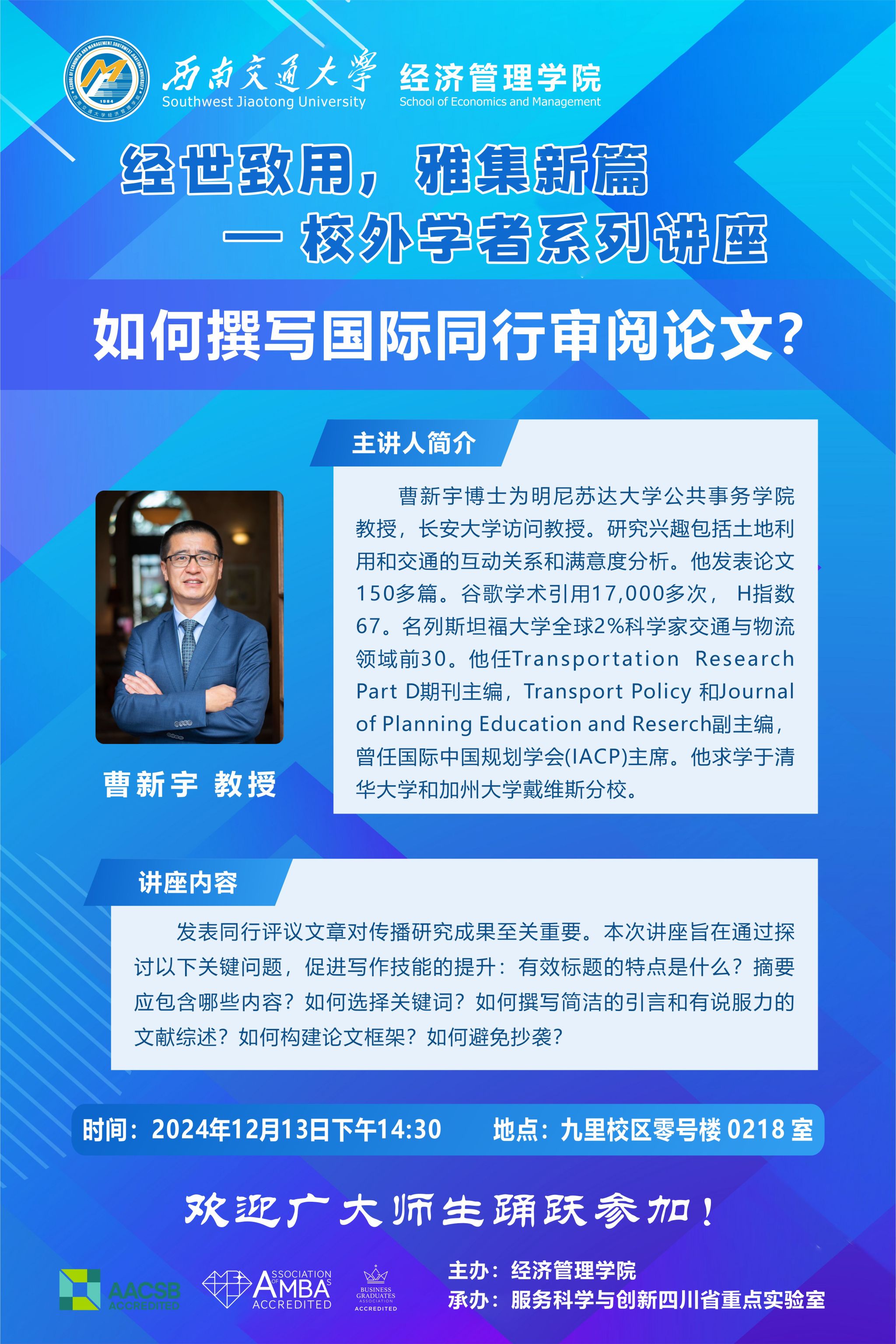 明尼苏达大学曹新宇教授学术讲座