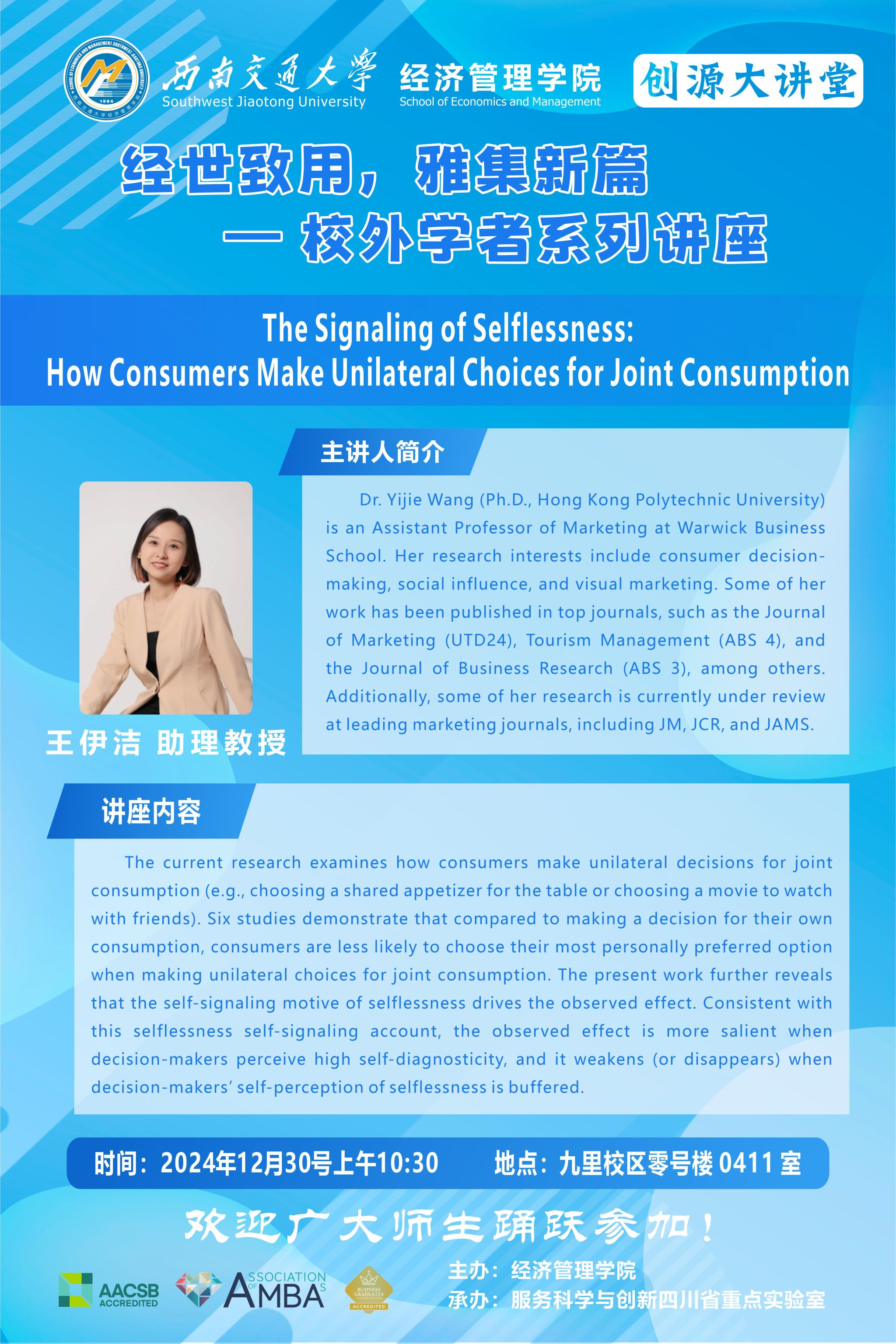 英国华威大学王伊洁助理教授学术讲座