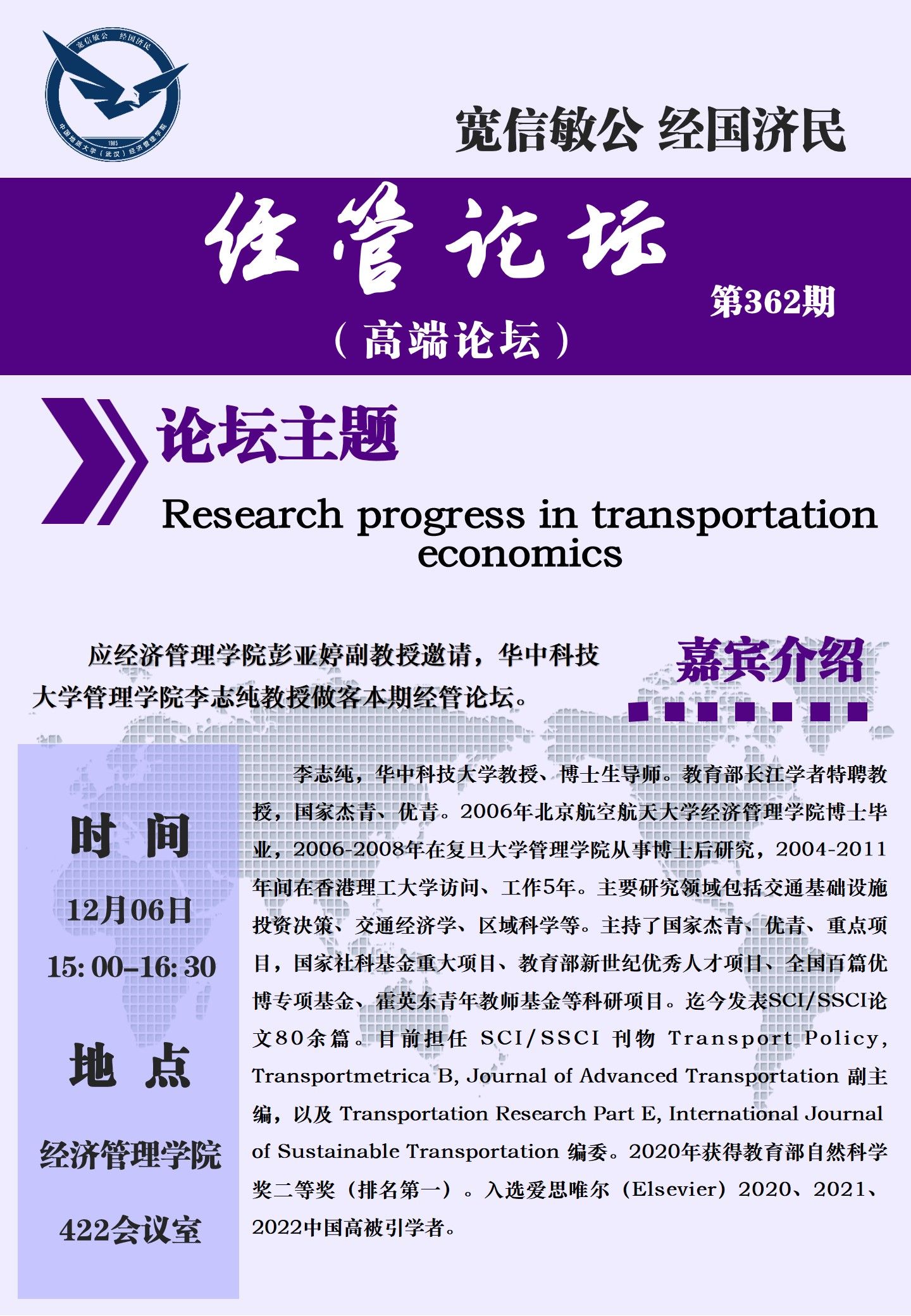经管论坛(第362期)Research progress in transportation economics