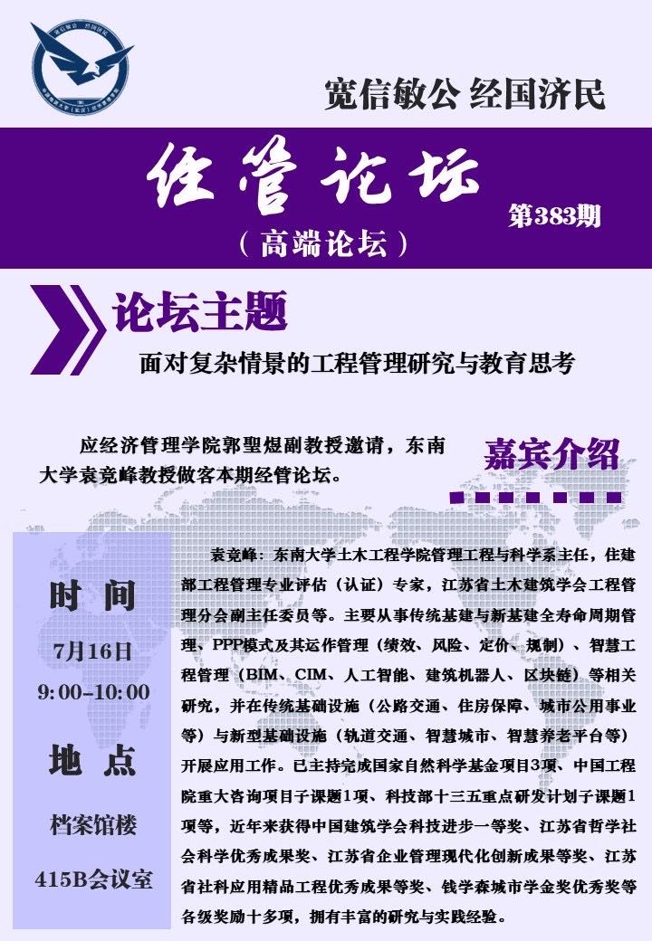 经管论坛(第383期)面对复杂情景的工程管理研究与教育思考