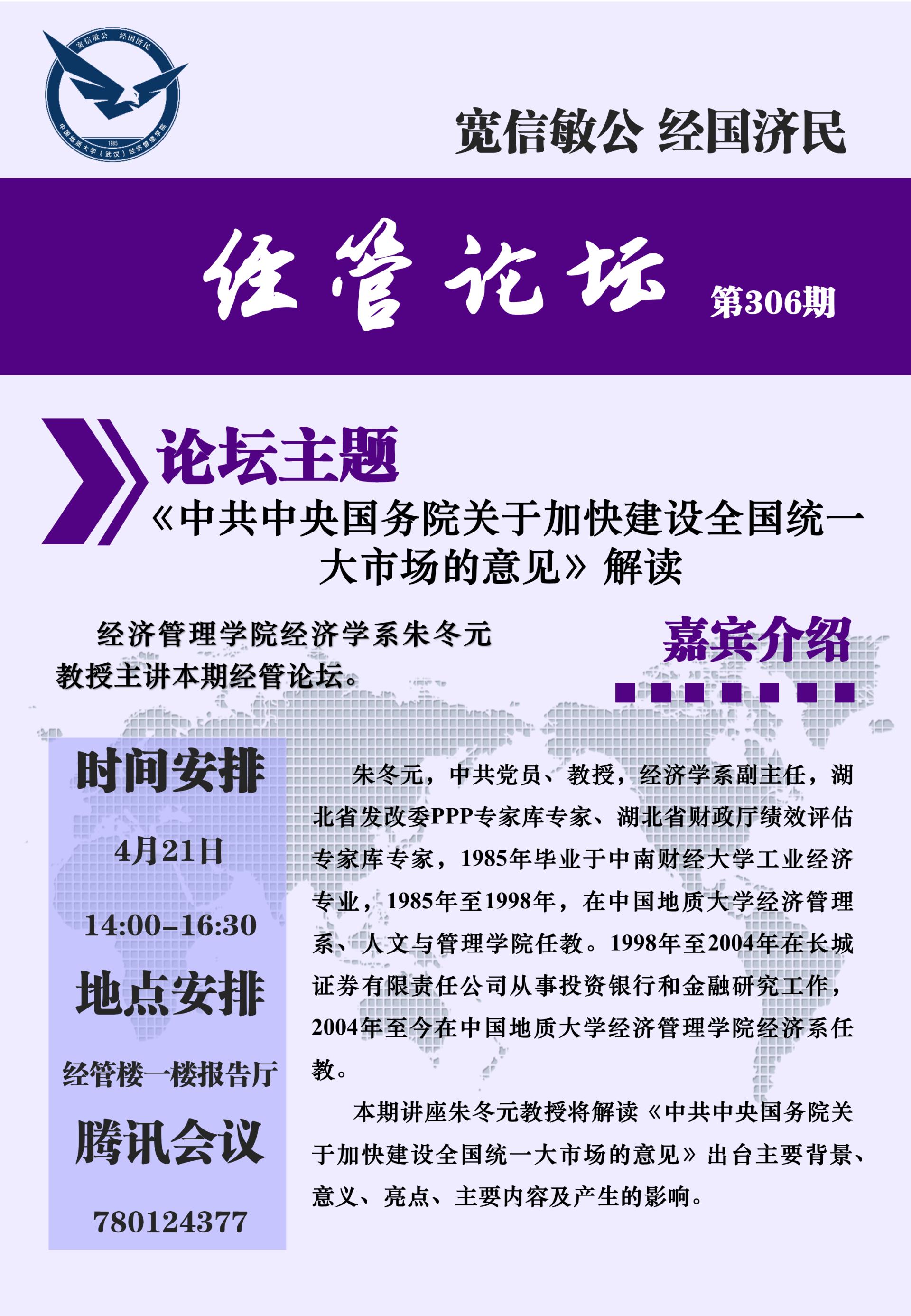 经管论坛(第306期)《中共中央国务院关于加快建设全国统一大市场的意见》解读