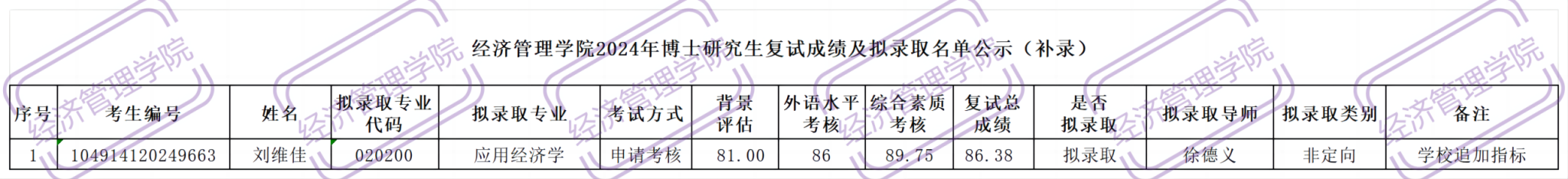 现对拟录取博士研究生考生补录名单进行公示,公示期为2024年5月16日至5月25日,公示期内若有异议,请在5月24日前实名申诉。联系人:王老师,办公电话:027-67883204,电子邮箱:360655881@qq.com。拟录取情况说明请见第一批拟录取公示/info/1137/10497.htm。