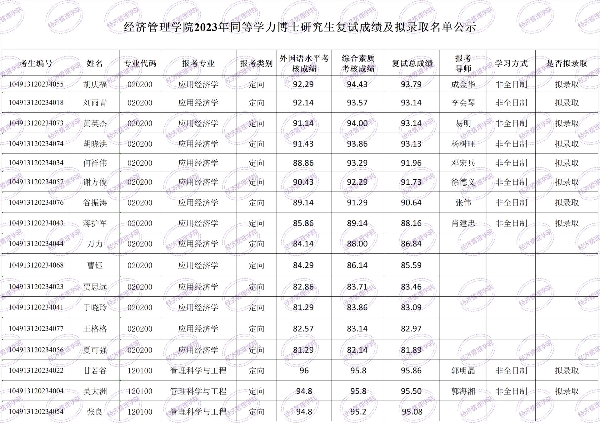 根据2023年同等学力人员申请博士学位研究生招生复试录取工作方案,经资格审查和复试考核,现对2023年拟录取单证博士生名单予以公示,公示期为6月12日-6月21日。在公示期内有异议的,请联系Beat365官方网站研究生办公室王老师,联系方式:027-67883204,邮箱:360655881@qq.com。