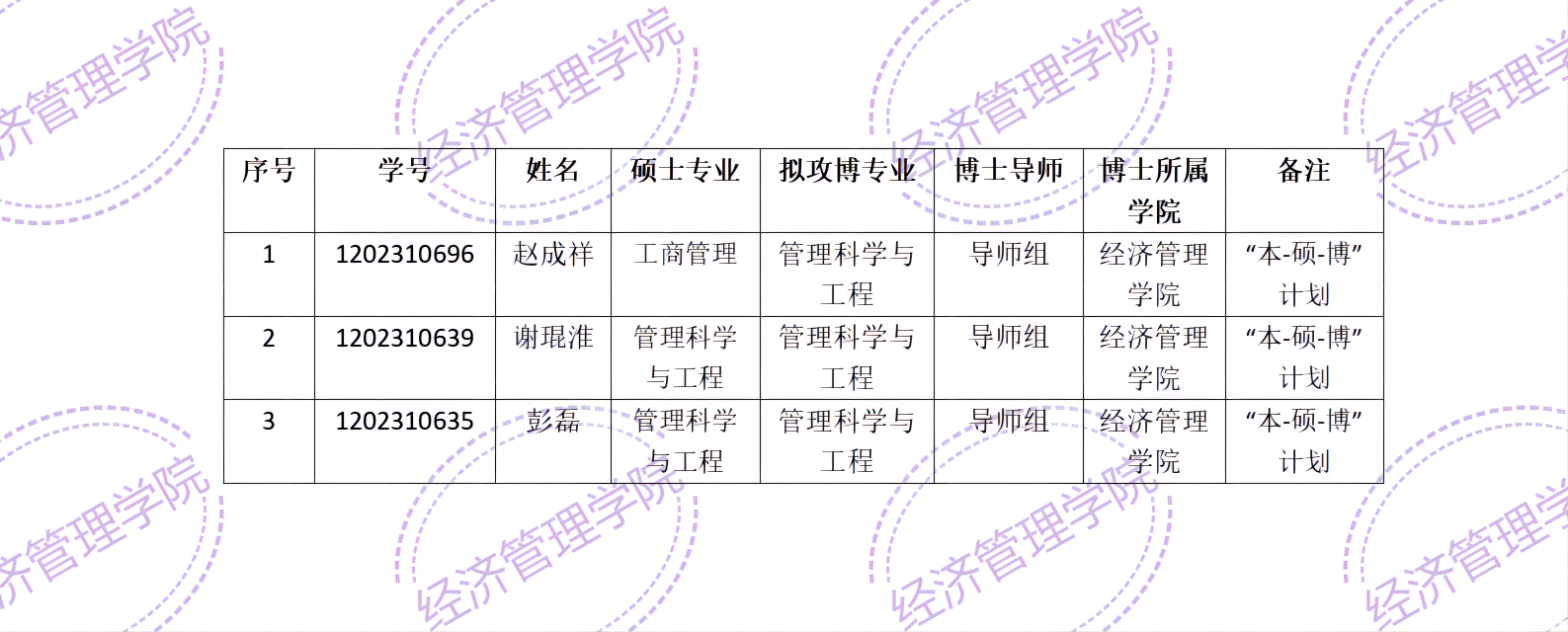 经济管理学院2023级硕博连读研究生(“本-硕-博”计划)名单