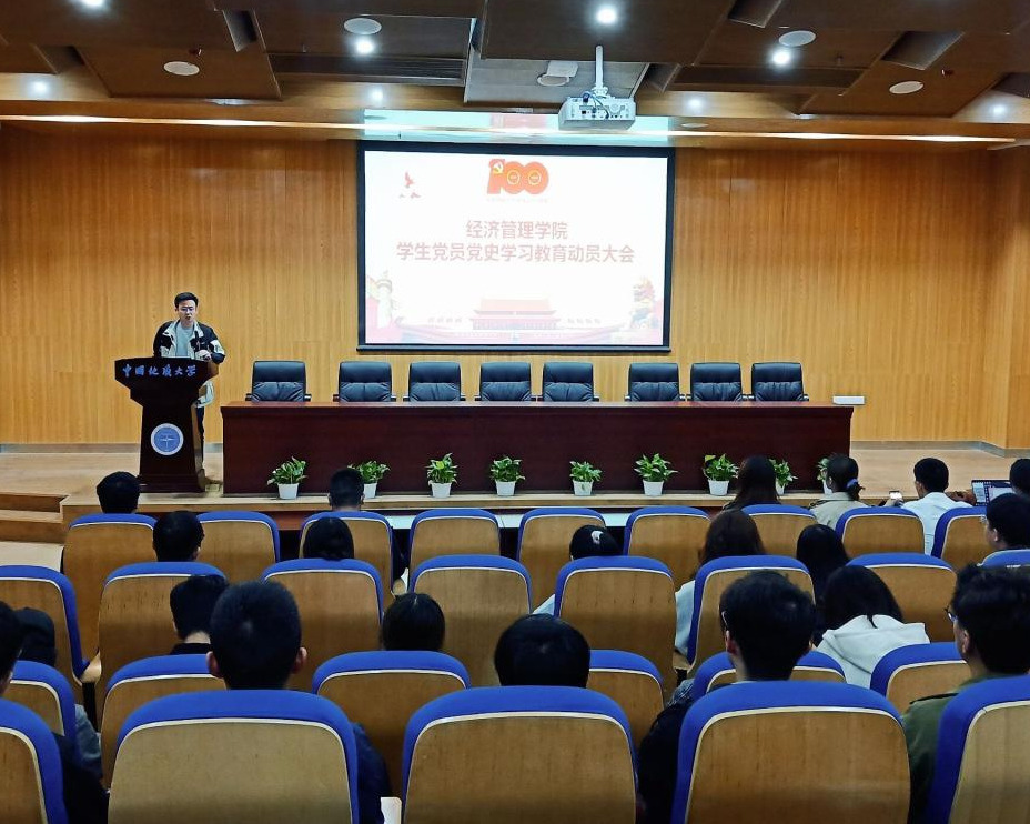 在学院党史学习教育大会的部署下,学院学生党史学习教育动员大会于当日下午在未来城校区经管楼报告厅举行。学院党委副书记李少杰、团委书记田昆、全体辅导员、各学生党支部书记、团学研干部以及学生班级代表参加会议。学院党建工作辅导员赵家玮讲解了《Beat365官方网站关于在全体学生党支部和学生党员中深入开展党史学习教育的通知》内容。学院学院党委副书记李少杰作动员讲话并为学生班团代表以及党团校学员代表授旗。李少杰指出,各学生党支部要统一思想,深入谋划,以高水平的组织保障高质量的效果,塑造新时代经管学子的优良作风;要坚持正确导向和鲜明主题,把学习习近平新时代中国特色社会主义思想贯穿全年,准确把握党的历史发展的主题和主线、主流和本质,树立正确的历史观、民族观、国家观、文化观;更要以党史学习教育贯穿和引领年度学生工作,做到党团班建一体推进、师生校企结对共建、学研查改贯通执行、知行合一有效转化。