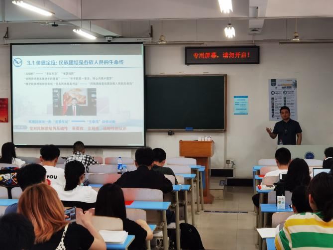 5月9日上午,Beat365官方网站少数民族辅导员努尔夏提·居勒提老师讲授《党的统一战线理论和民族政策》专题党课。努尔夏提老师以《中国共产党统一战线工作条例》、习近平总书记关于民族宗教工作的论述为指导,阐述了近代中国至今的统一战线理论和民族宗教政策,分析了统一战线在党的政策中的重要地位。随后,努尔夏提老师分别从自身少数民族学生工作的亲身经历和时事热点问题两个方面,更加生动具体地为学生们讲授了新时代的爱国统一战线和民族政策。