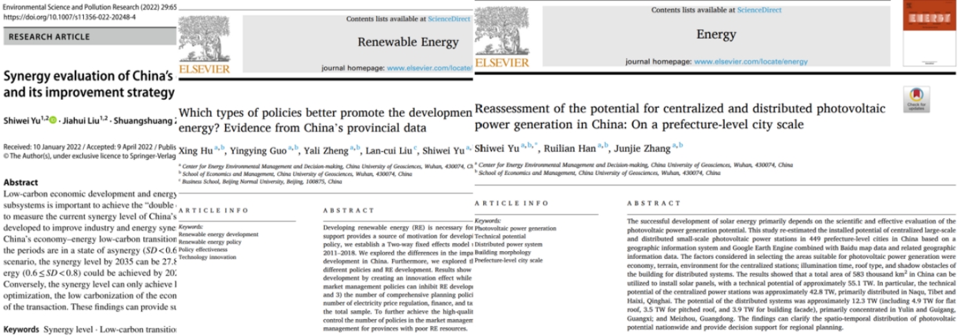 党支部成员相关研究成果发表在能源环境领域高水平期刊上