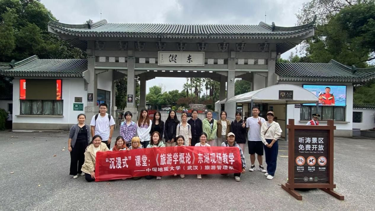 “读万卷书,行万里路”,旅游管理系在人才培养中十分重视实践育人环节。秉持“实践出真知”的教育理念,除了常规的教学实习、综合实习和毕业实习外,各专业课程还积极利用武汉及其周边丰富的旅游资源,如地大博物馆、东湖、湖北省博物馆、汉阳造创意园区等,设立现场教学点和课外见习基地,通过打造“沉浸式课堂”,让学生在真实环境中开阔旅游专业视野,张开旅游现象观察之眼,习得旅游调查研究方法,发展旅游综合实践能力,为培养既有旅游理论知识又具备旅游实践能力的综合型人才奠定坚实基础。此次东湖之行,正是践行这一教育理念的体现。