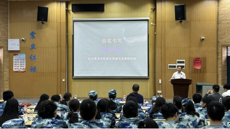 最后,学院党委书记杨昌锐以“奋笔书写更美华章”为题,围绕院徽、院训、愿景、院风和使命,阐述了学院“鹰文化”所代表的领先精神,以及“宽信敏公 经国济民”院训中视野、诚信、敏行和担当的内涵。他勉励新生深刻理解学院“经国济民”的使命与建设高水平研究型学院的愿景,传承和谐奋进的院风,努力成为兼具家国情怀和专业能力的卓越人才。