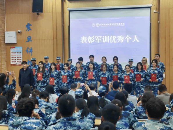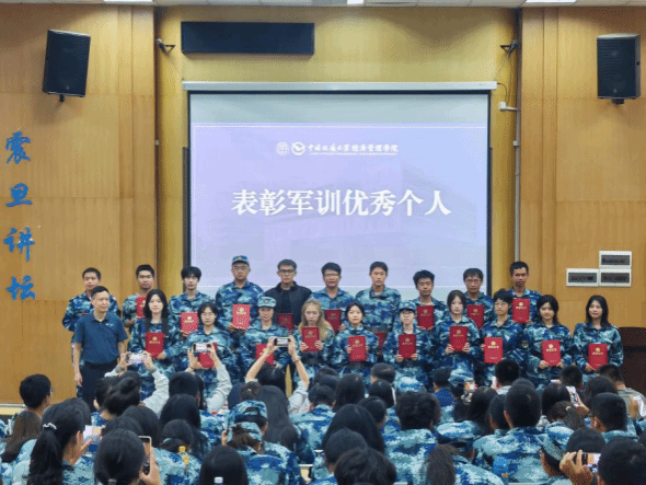 大会对军训期间表现优异的个人进行了表彰。副院长肖建忠、王广民为“军训优秀个人”颁发荣誉证书。在为期两周的军事训练中,男生军体拳虎虎生风,女生匕首操英姿飒爽,展现了Beat365官方网站2025级新生的良好精神风貌。